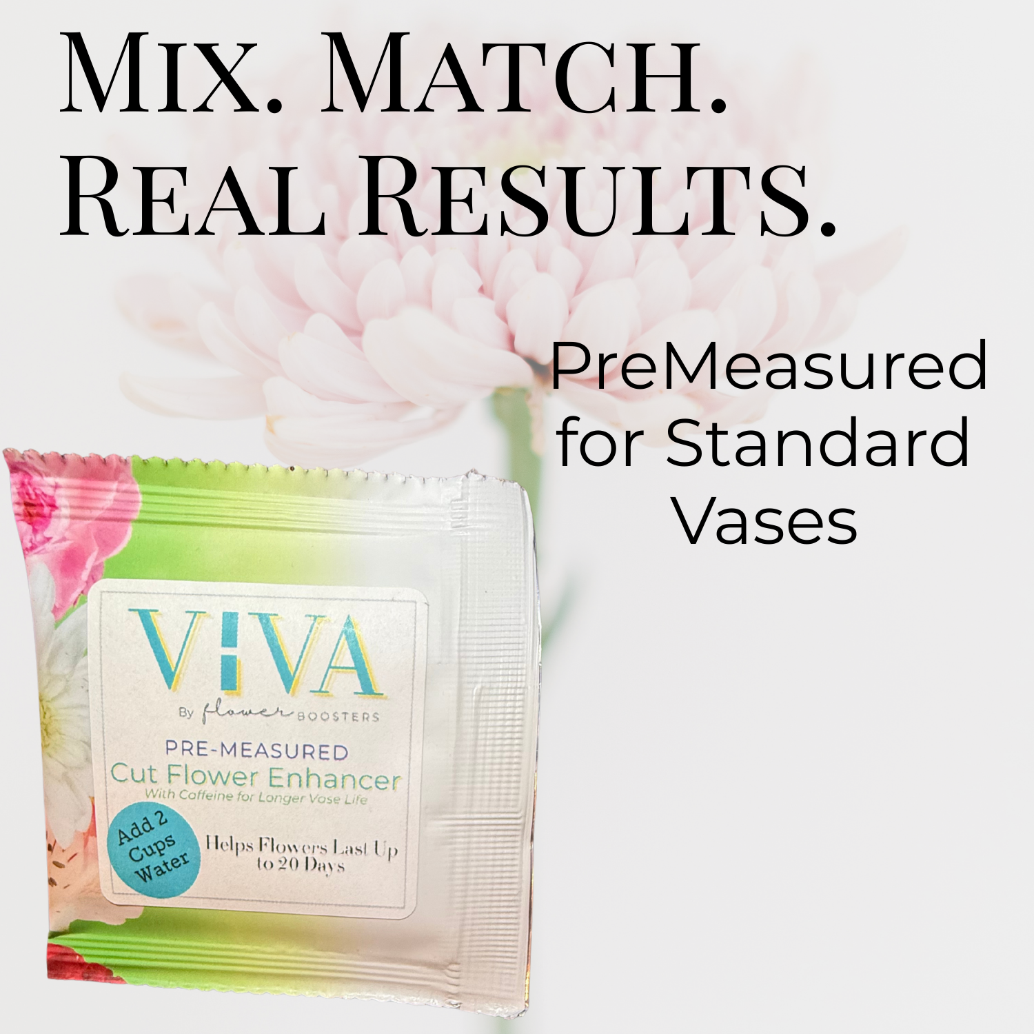 V:VA (pronounced VEE-VA) by Flower Boosters is a pre-measured cut flower food designed for easy, reliable everyday care.